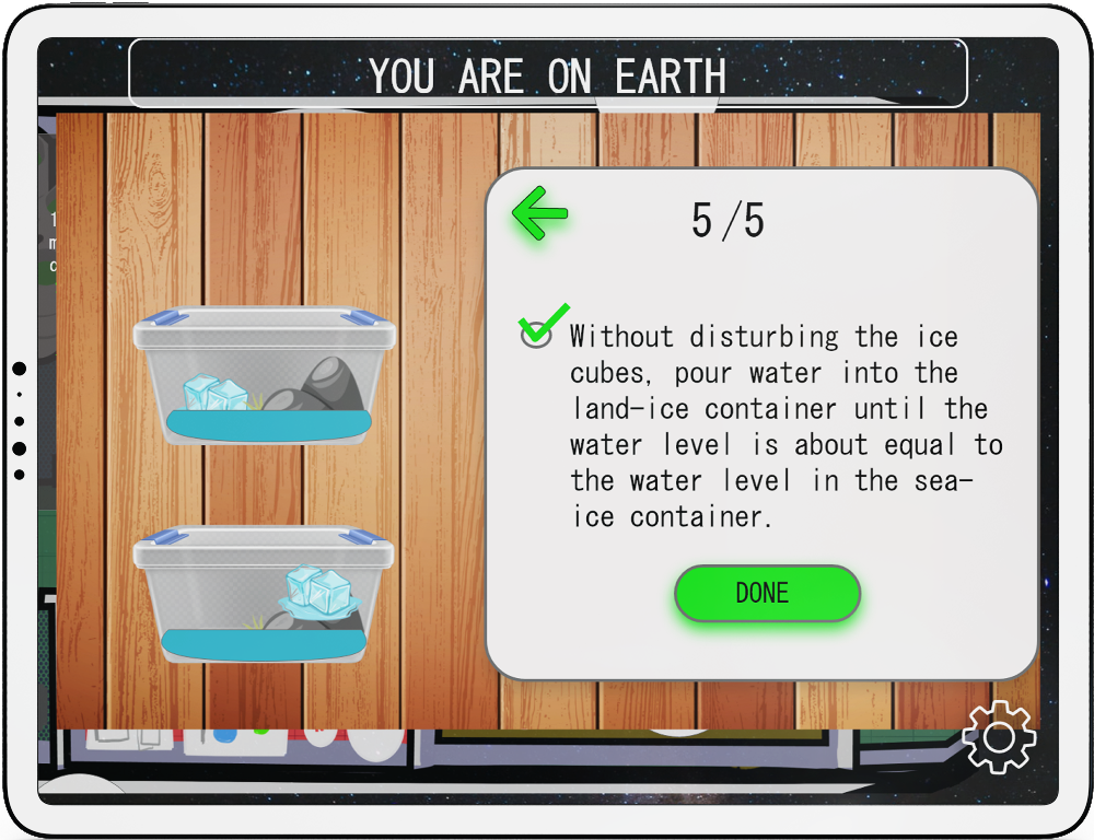 You are on Earth — GRACE mission mini games to complete (Glacial Pace, Gravity Slam, River Rush, Space Race, Satellite Battle)